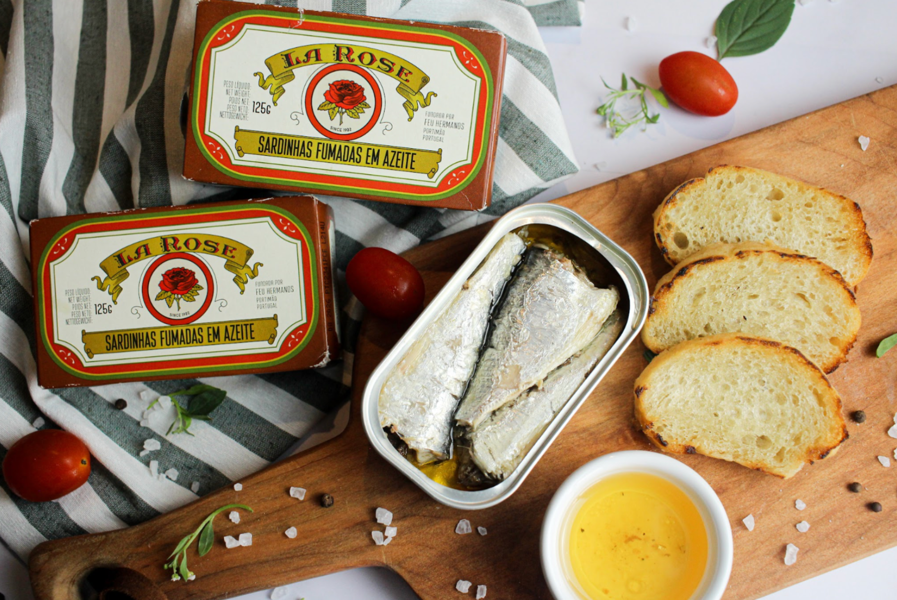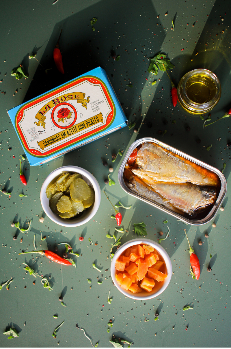 Produções de fotos de produtos realizadas para fábrica de pescados mais antiga do mundo, La Rose em exclusividade para a importadora brasileira Fui ao Mar.