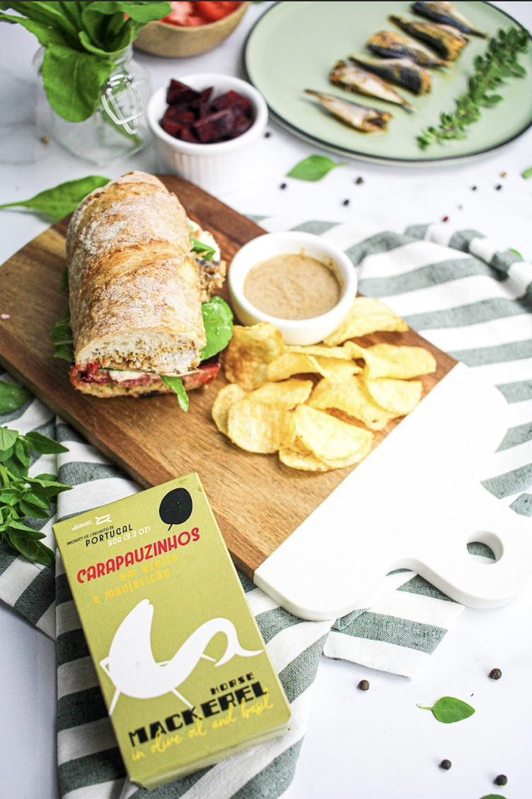 Desenvolvimento de receitas em exclusividade para a Fui ao Mar, com os produtos da Ati Manel: Rolinho vietnamita com sardinhas picantes; Sanduiche de carapauzinhos em azeite e manjericão; Salpicão de sardinhas ao limão.